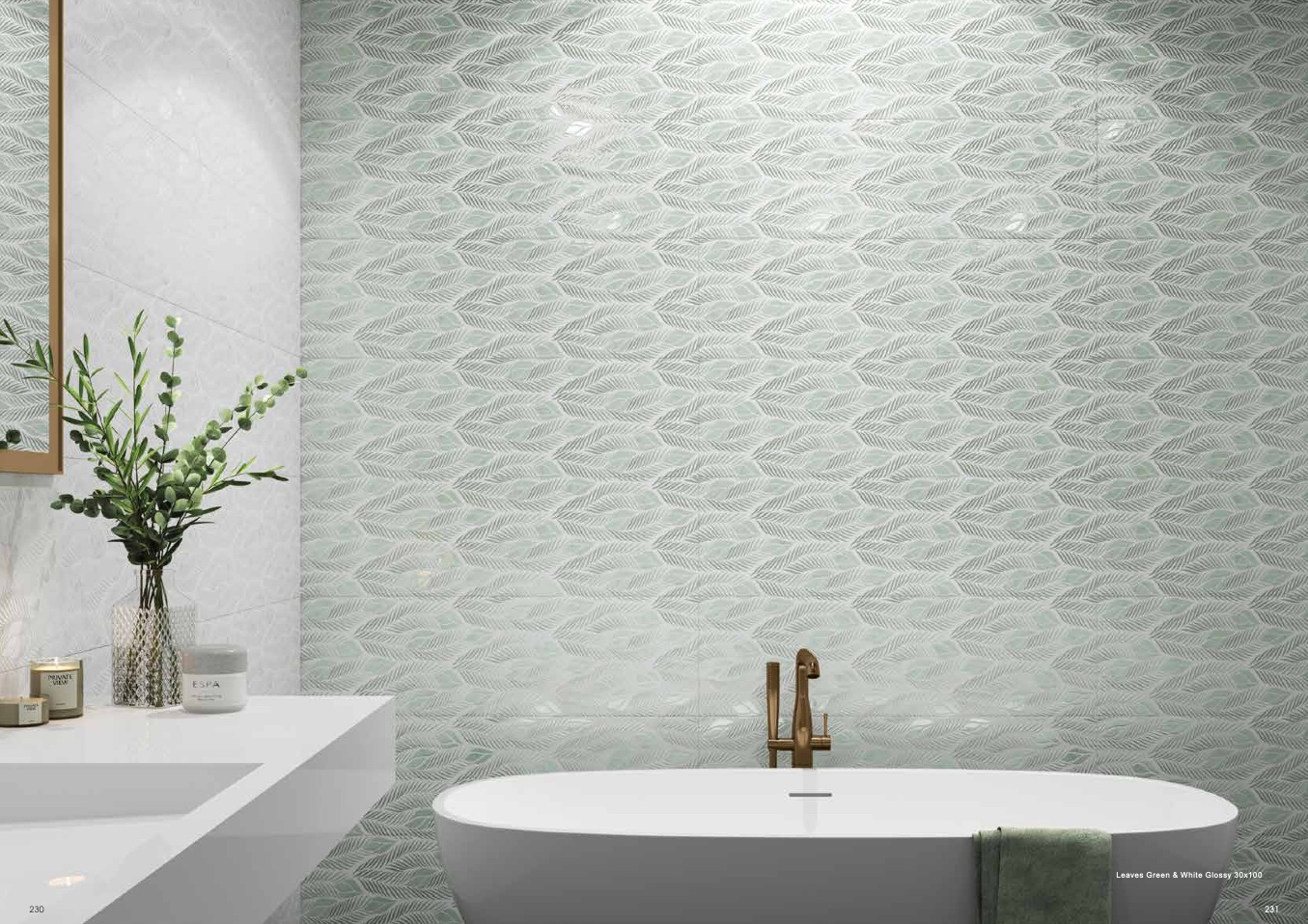 Leaves Green & White Glossy 30x10