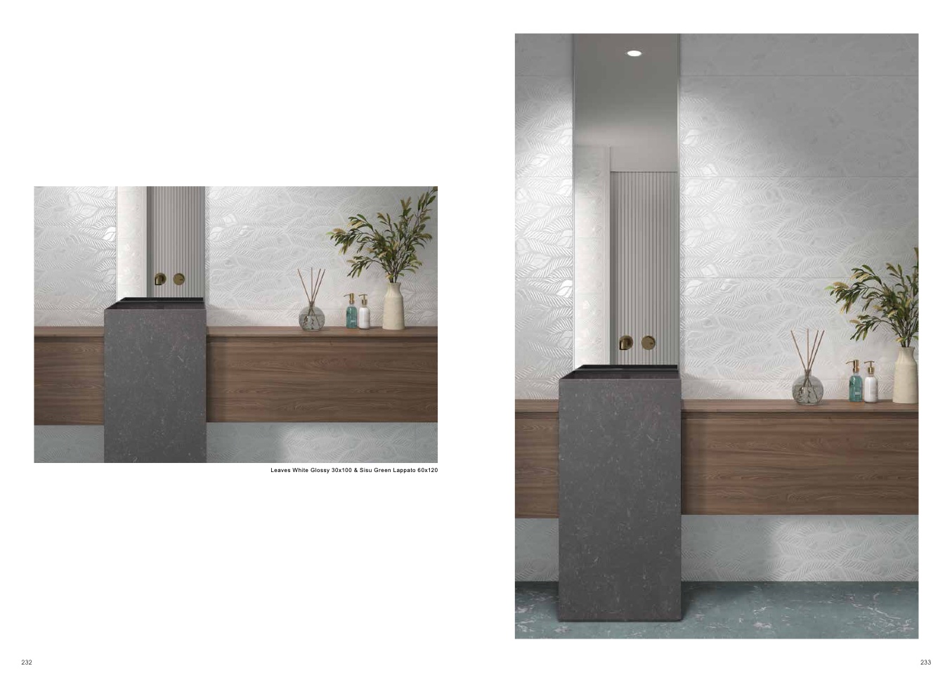 Leaves White Glossy 30x100 & Sisu Green Lappato 60x120