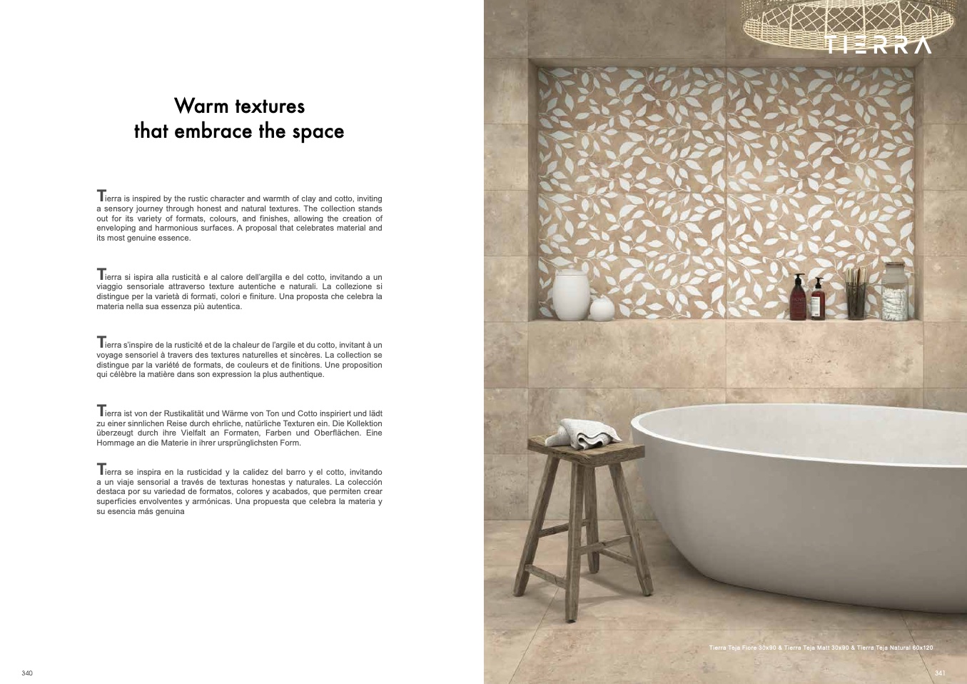 Tierra is inspired by the rustic character and warmth of clay and cotto, inviting