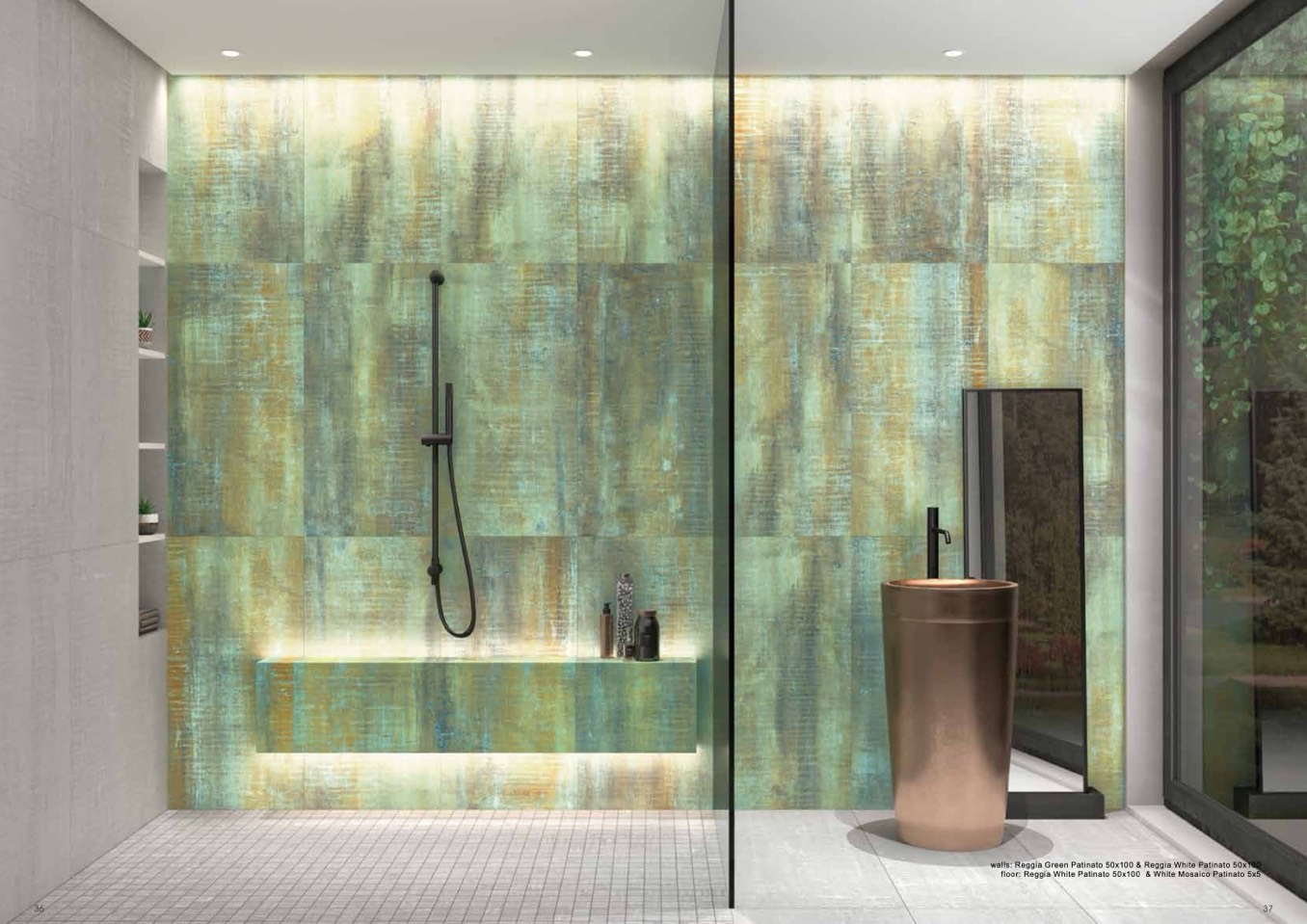 walls: Reggia Green Patinato 50x100 & Reggia White Patinato 50x10