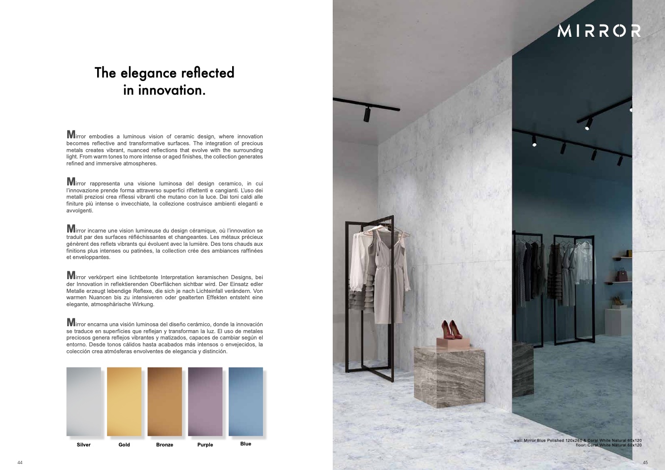 Mirror rappresenta una visione luminosa del design ceramico, in cui