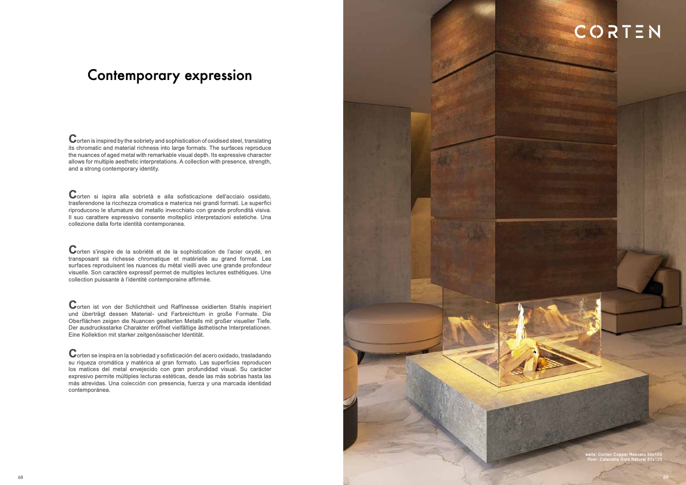 Corten is inspired by the sobriety and sophistication of oxidised steel, translating