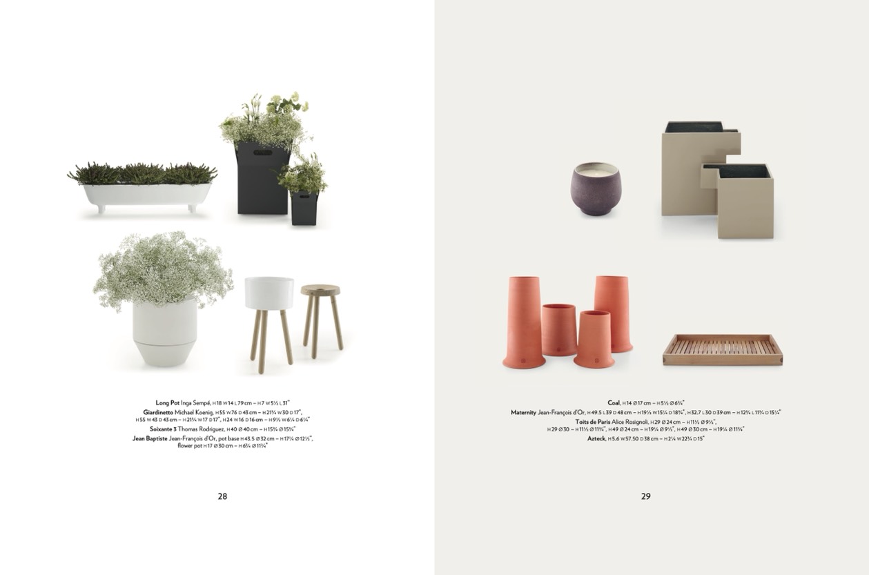 49.5 l 39 d 48 cm – h 191⁄2 w 151⁄4 d 183⁄4”, h 32.7 l 30 d 39 cm – h 123⁄4 l 113⁄4 d 151⁄4”