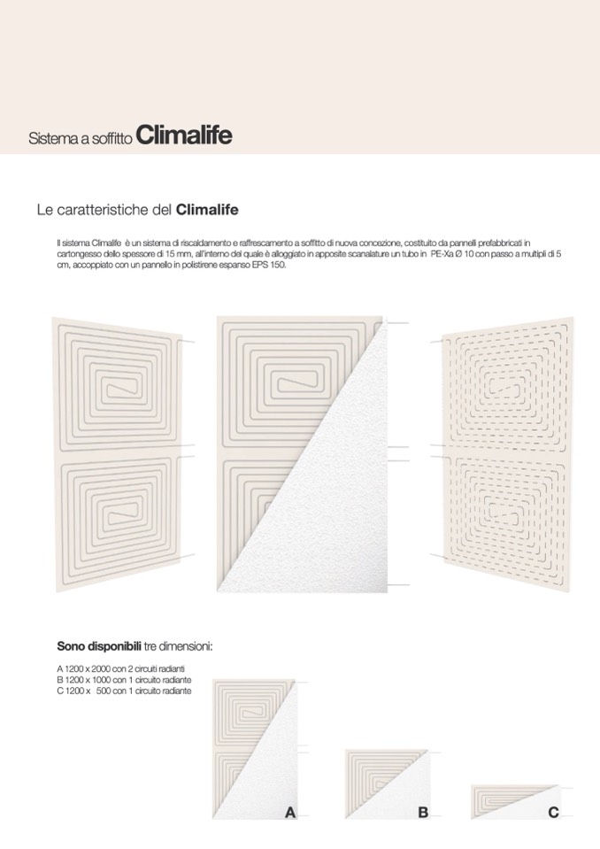 IlsistemaClimalife èunsistemadiriscaldamentoeraffrescamentoasoffittodinuovaconcezione,costituitodapannelliprefabbricatiin