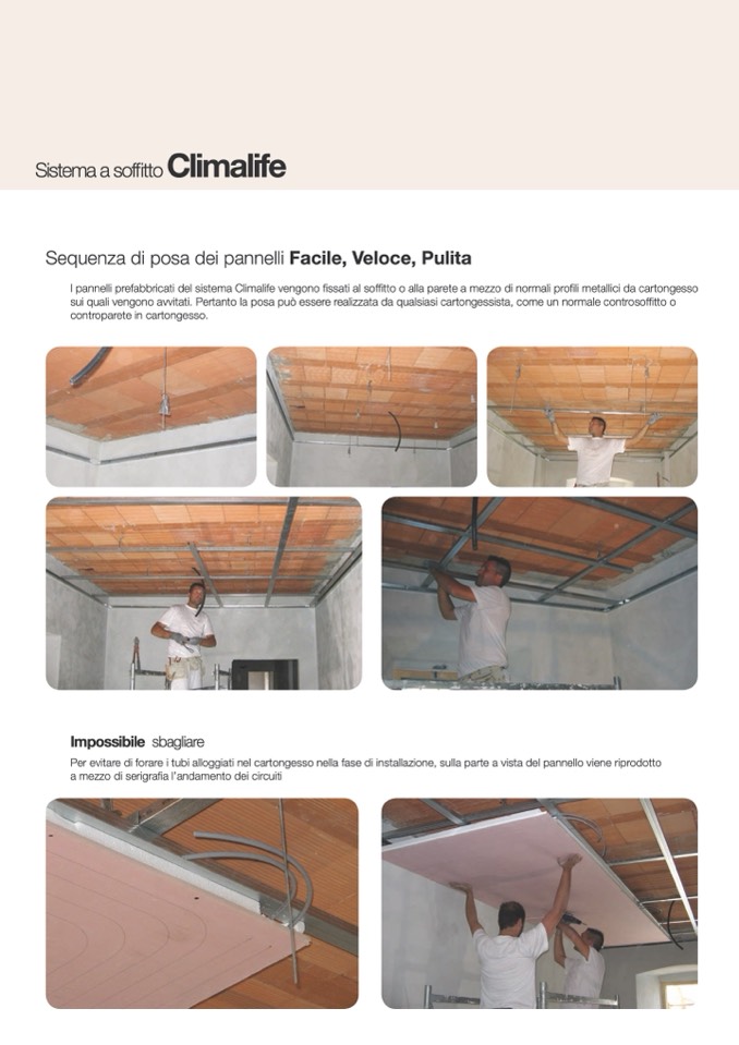 I pannelli prefabbricati del sistema Climalife vengono fissati al soffitto o alla parete a mezzo di normali profili metallici da cartongesso
