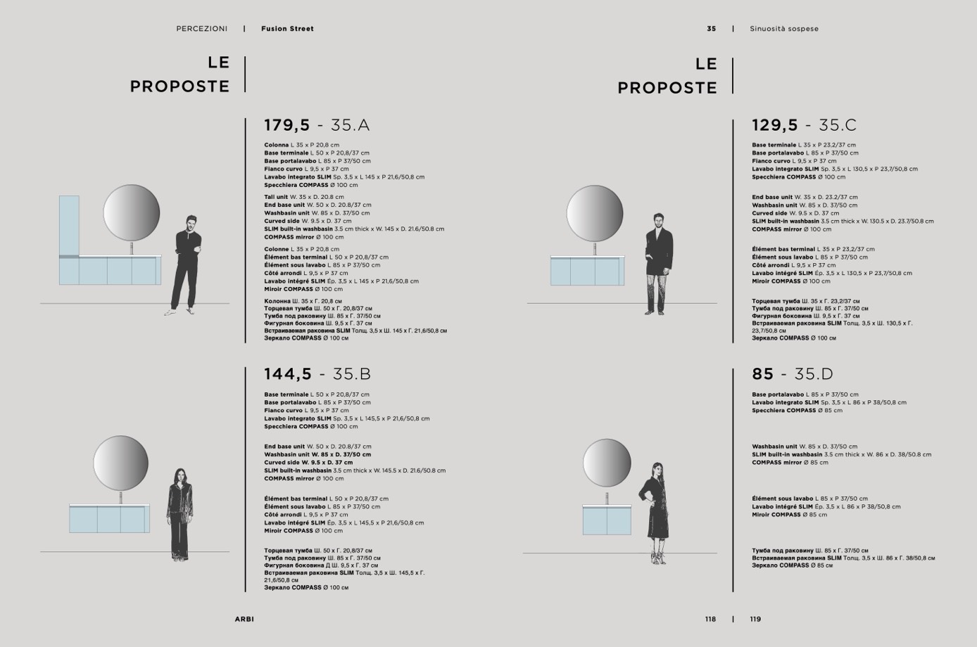 Lavabo integrato SLIM Sp. 3,5 x L 130,5 x P 23,7/50,8 cm