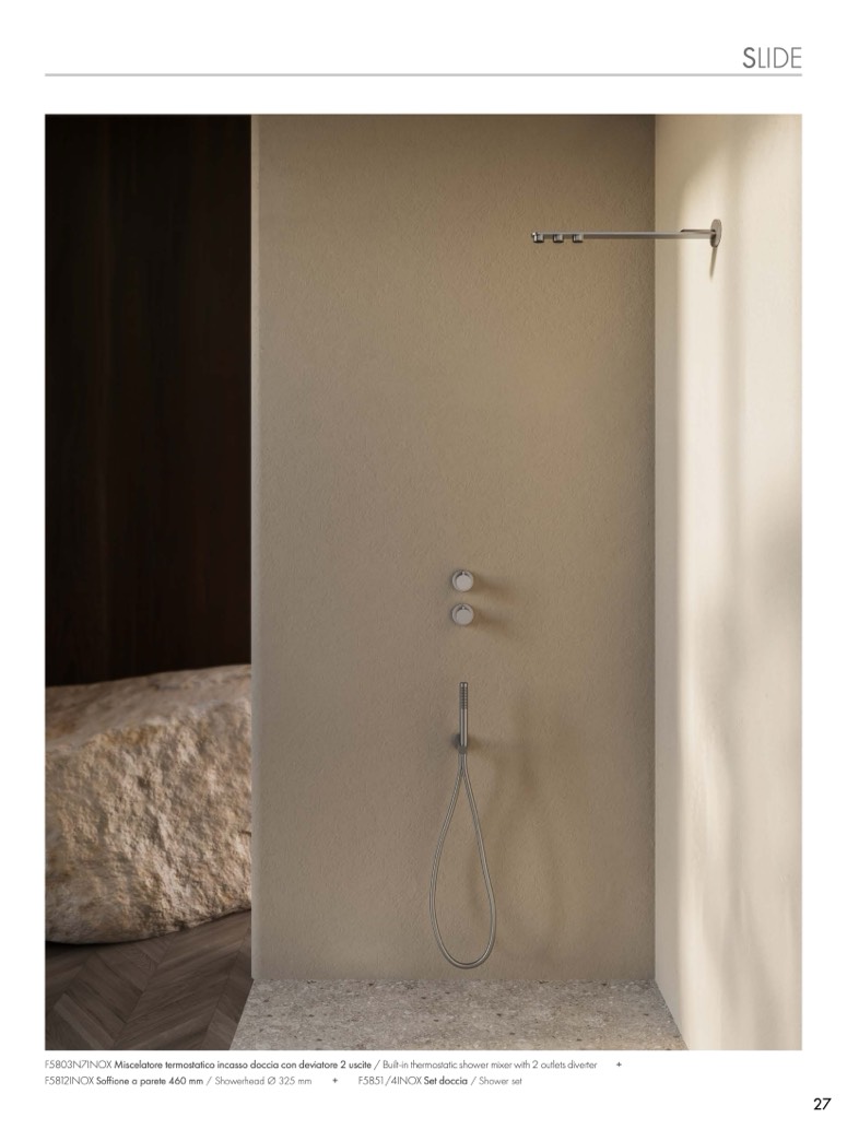 F5803N7INOX Miscelatore termostatico incasso doccia con deviatore 2 uscite / Built-in thermostatic shower mixer with 2 outlets diverte