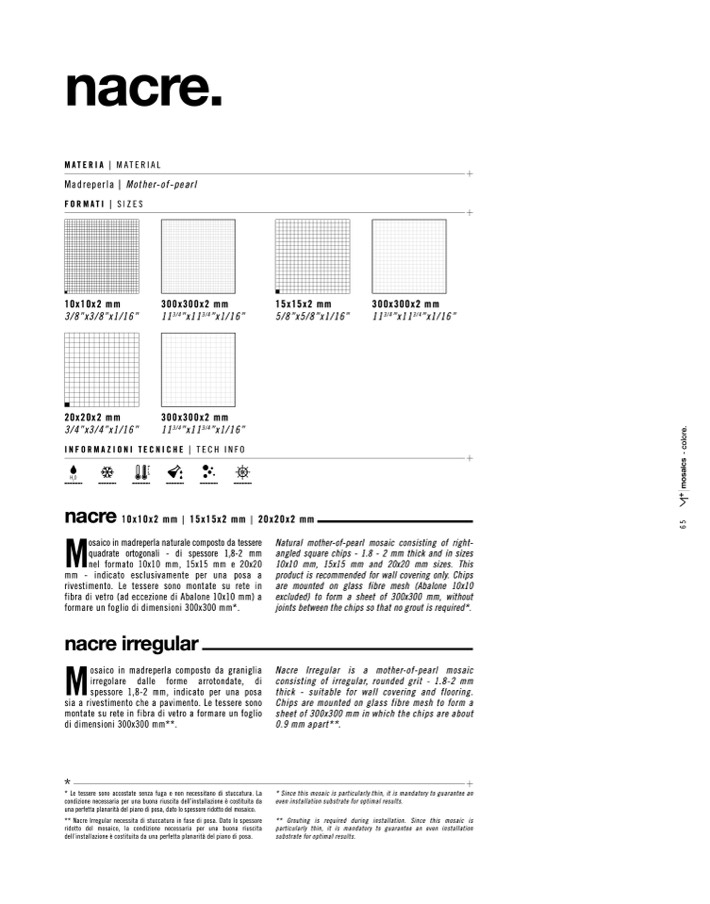 ** Nacre Irregular necessita di stuccatura in fase di posa. Dato lo spessore