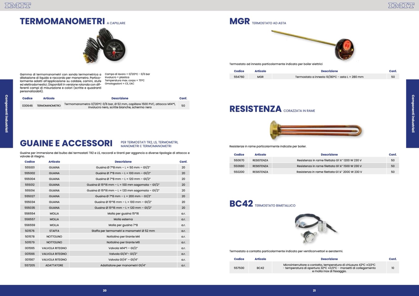 Guaine per immersione del bulbo dei termostati TR2 e LS, raccordi e tiranti per aggancio a diverse tipologie di attacco e