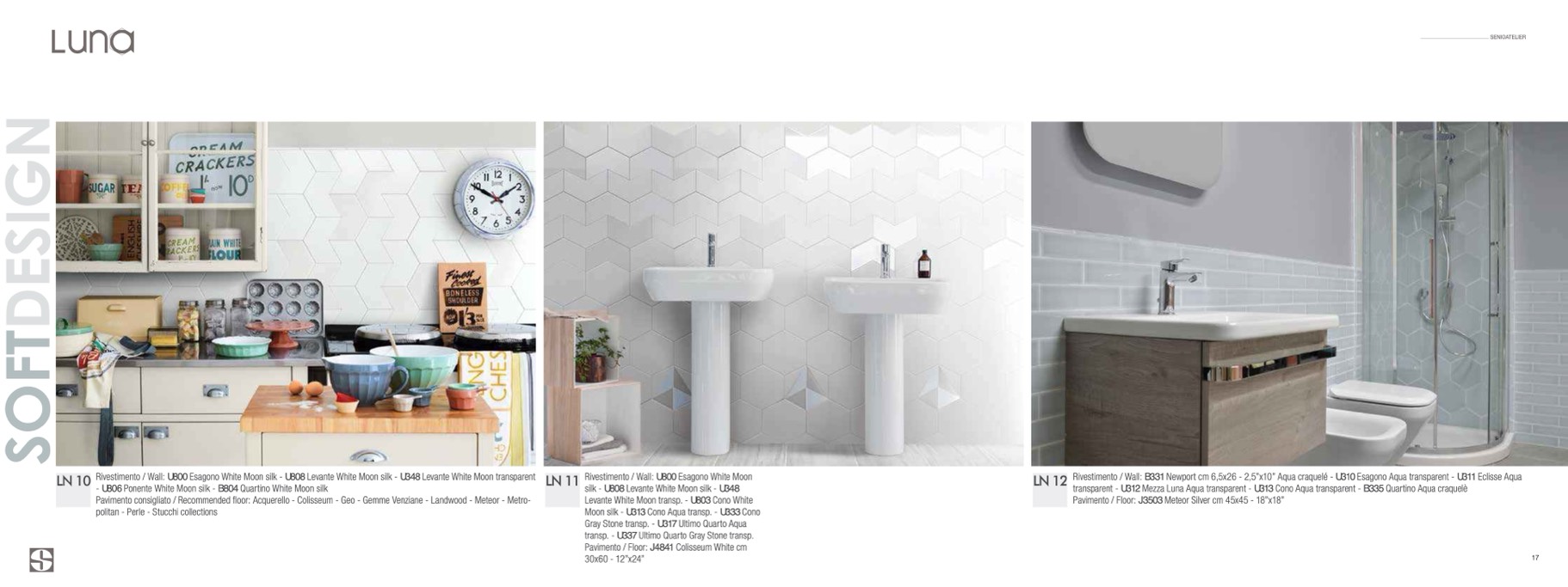 Rivestimento / Wall: U800 Esagono White Moon silk - U808 Levante White Moon silk - U348 Levante White Moon transparent
