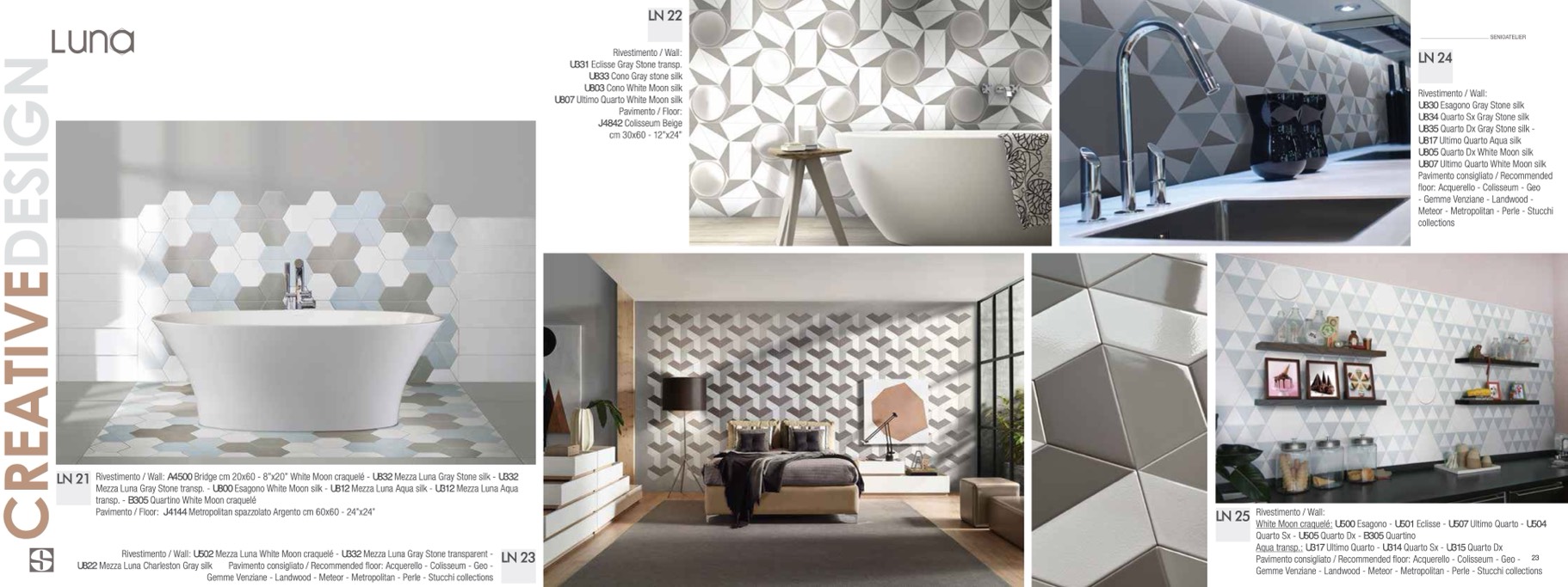 Rivestimento / Wall: A4500 Bridge cm 20x60 - 8”x20” White Moon craquelé - U832 Mezza Luna Gray Stone silk - U332