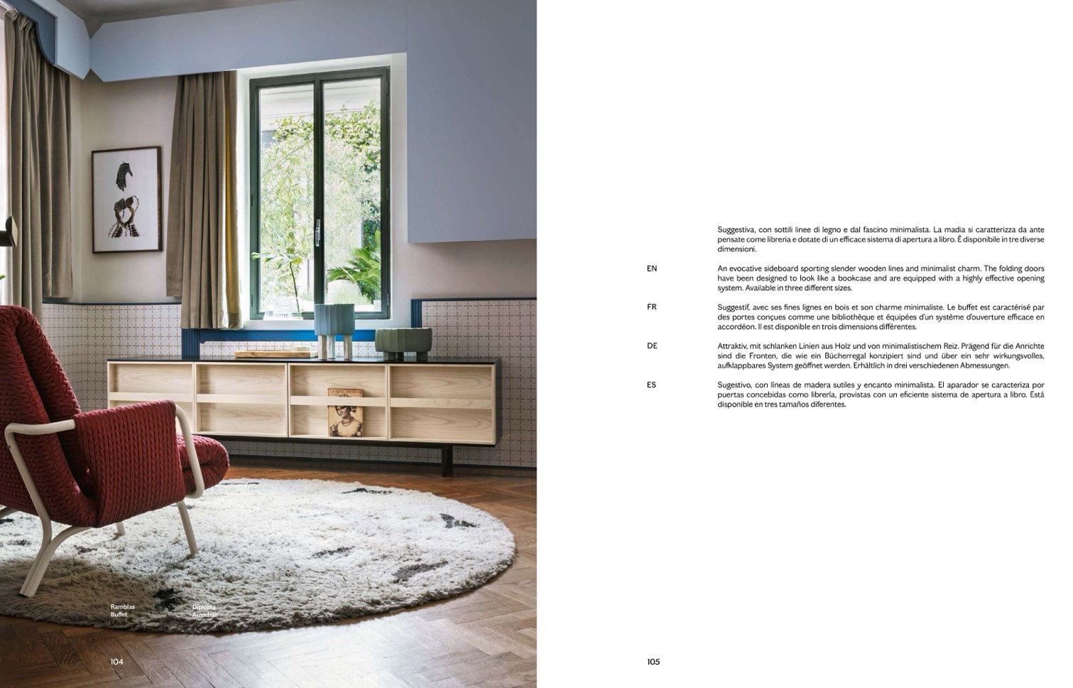 Suggestif, avec ses fines lignes en bois et son charme minimaliste. Le buffet est caractérisé par