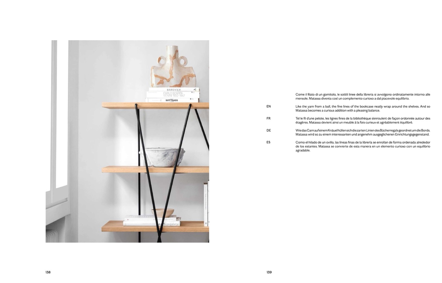 étagères. Matassa devient ainsi un meuble à la fois curieux et agréablement équilibré.