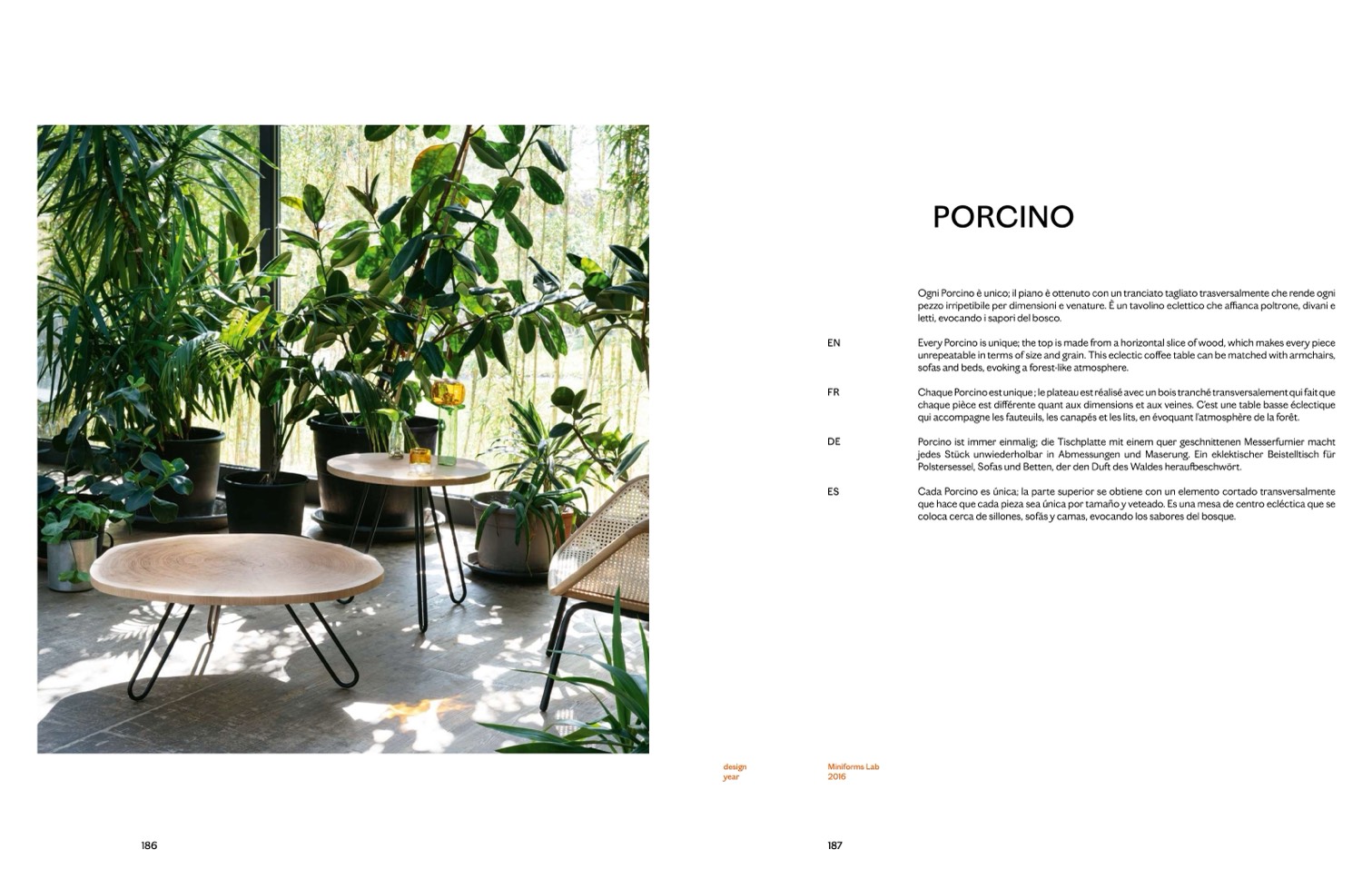 Every Porcino is unique; the top is made from a horizontal slice of wood, which makes every piece