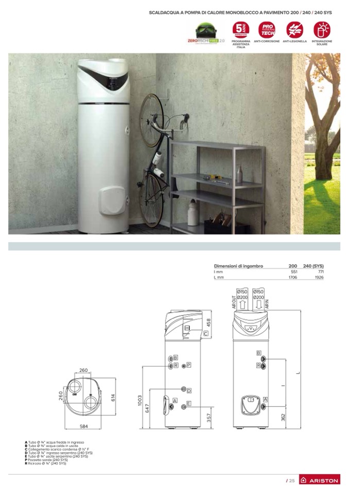 SCALDACQUA A POMPA DI CALORE MONOBLOCCO A PAVIMENTO 200 / 240 / 240 SYS