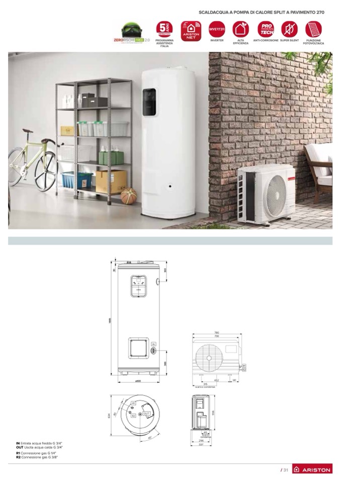 SCALDACQUA A POMPA DI CALORE SPLIT A PAVIMENTO 270