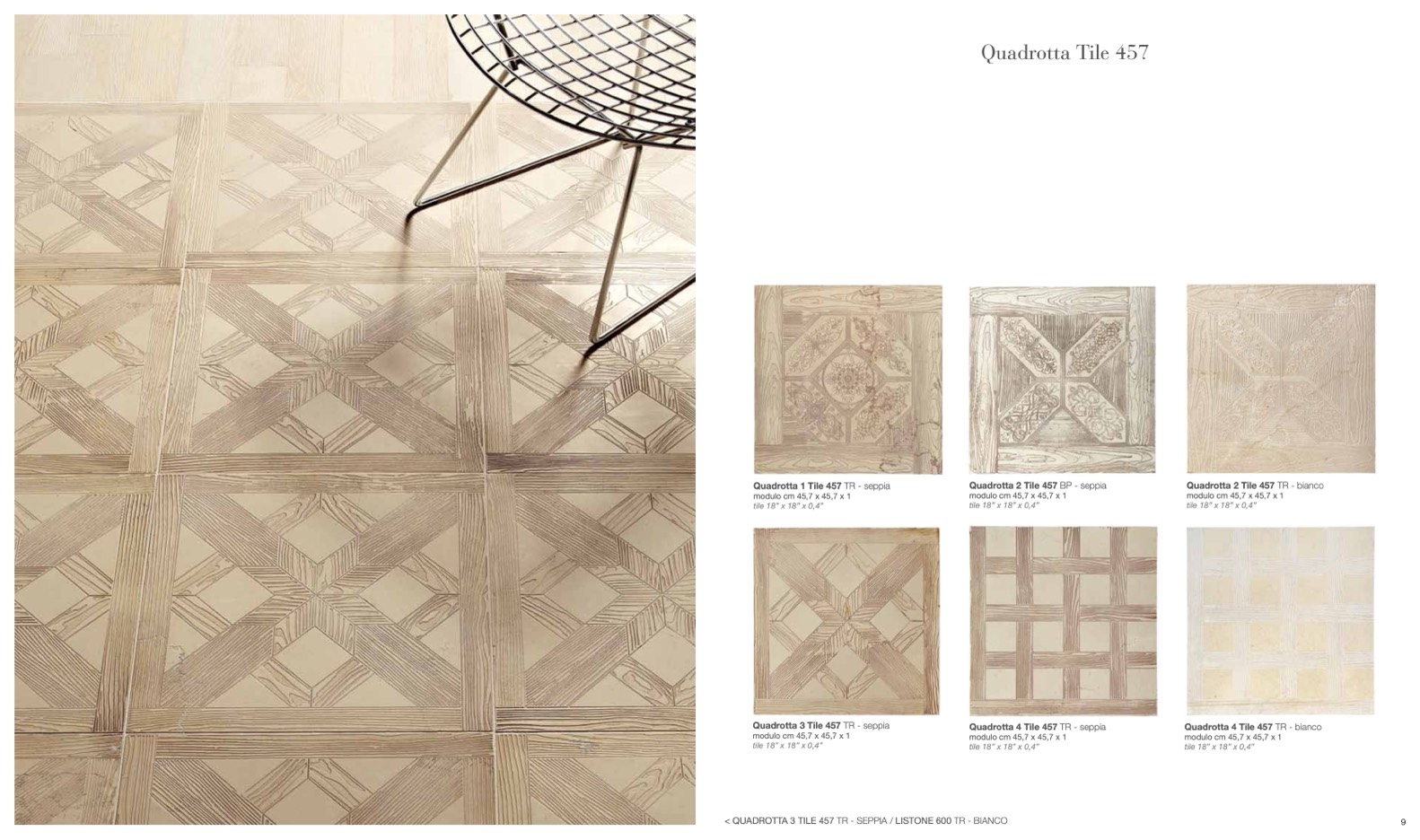 < QUADROTTA 3 TILE 457 TR - SEPPIA / LISTONE 600 TR - BIANCO