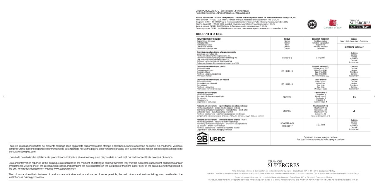 Printed in the month of January 2021 on behalf of Ceramiche Supergres - Strada Statale 467, n° 34 - 42013 Casalgrande (RE) Italy