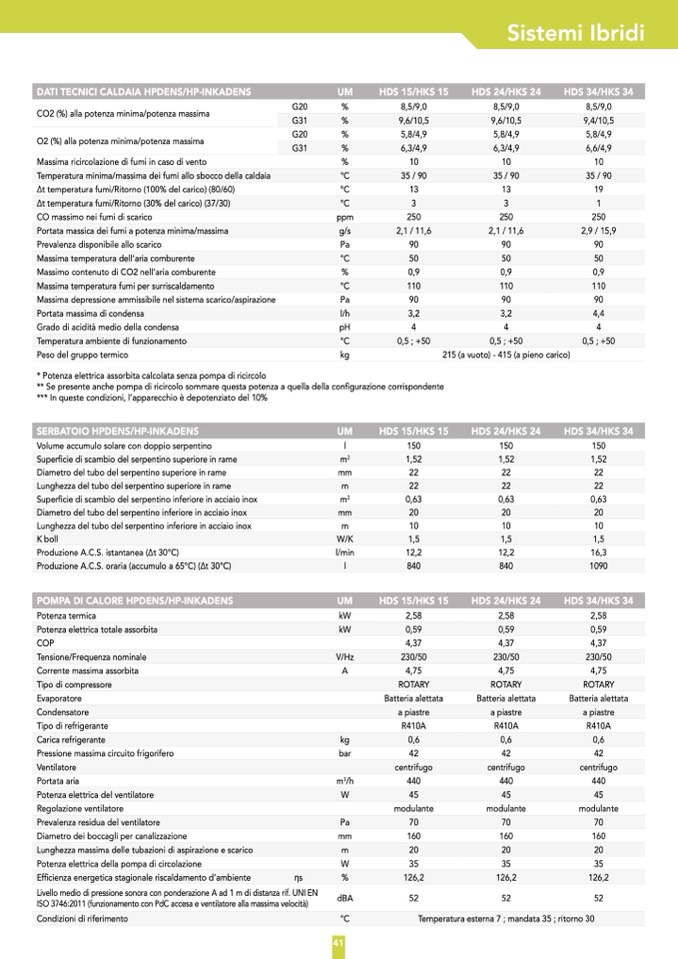 DATI TECNICI CALDAIA HPDENS/HP-INKADENS