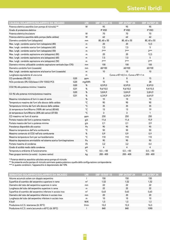 ** Se presente anche pompa di ricircolo sommare questa potenza a quella della configurazione corrispondente
