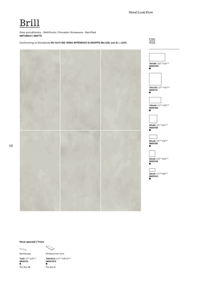 Conforming to Standards EN 14411 ISO 13006 APPENDICE G GRUPPO BIa UGL con Ev ≤ 0,5%