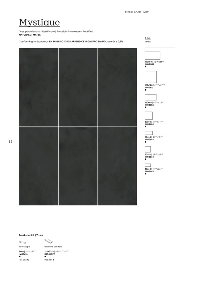 Conforming to Standards EN 14411 ISO 13006 APPENDICE G GRUPPO BIa UGL con Ev ≤ 0,5%