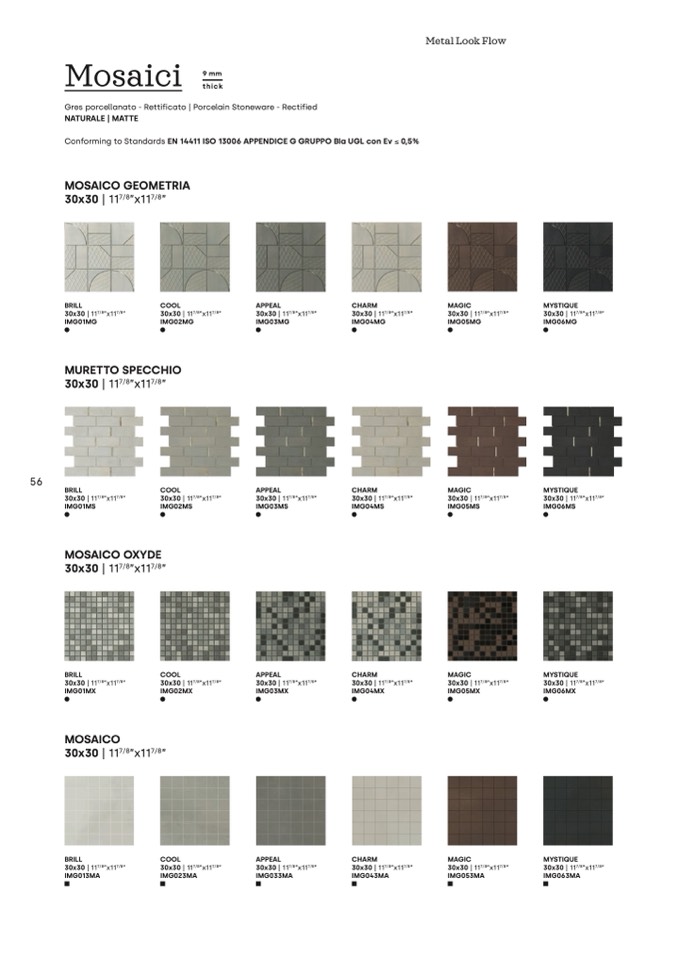 Conforming to Standards EN 14411 ISO 13006 APPENDICE G GRUPPO BIa UGL con Ev ≤ 0,5%
