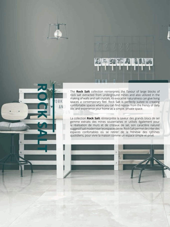 spaces a contemporary feel. Rock Salt is perfectly suited to creating