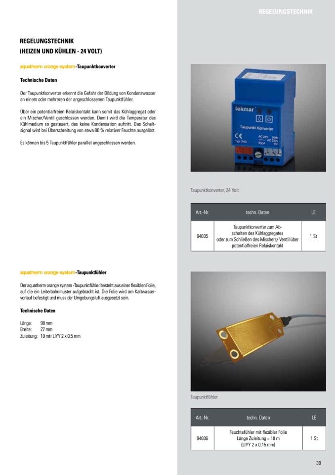 Der aquatherm orange system -Taupunktfühler besteht aus einer flexiblen Folie,