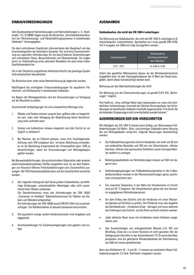 Nachfolgend die wichtigsten Einbauvorbedingungen für aquatherm Flä-