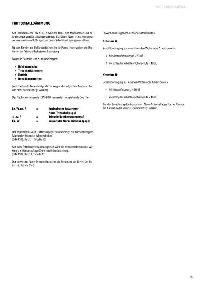 Der bewertete Norm-Trittschallpegel ist die Forderung der DIN 4109, Bei-