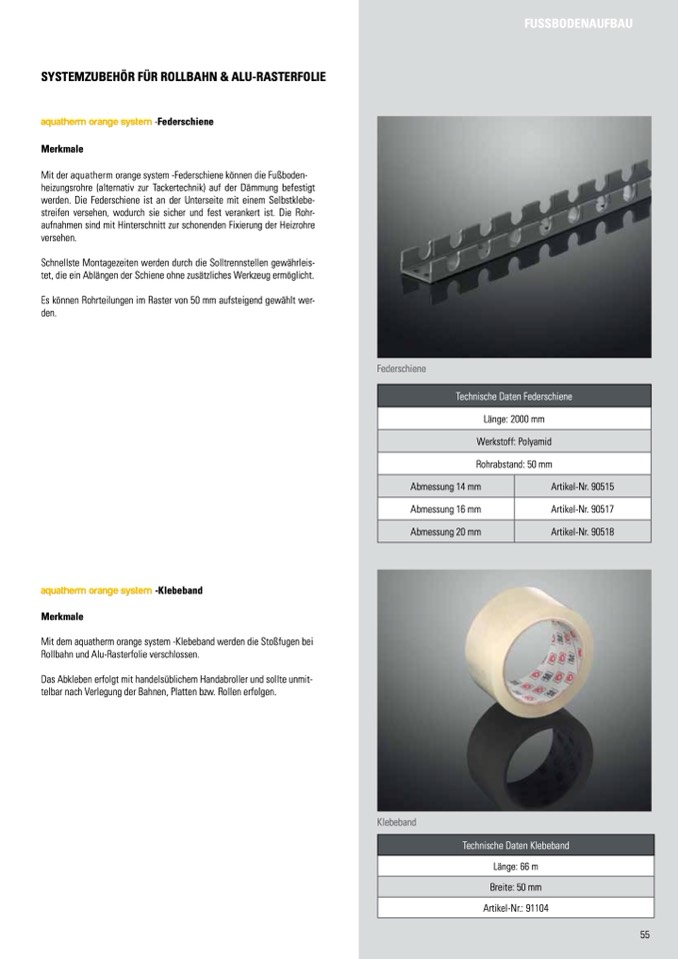 Mit der aquatherm orange system -Federschiene können die Fußboden-