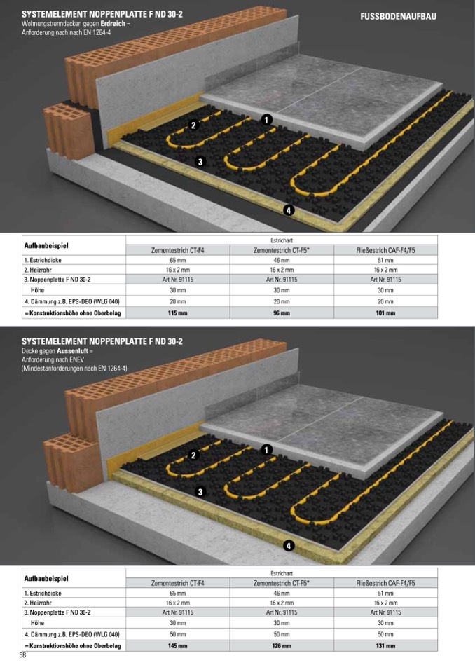 (Mindestanforderungen nach EN 1264-4)
