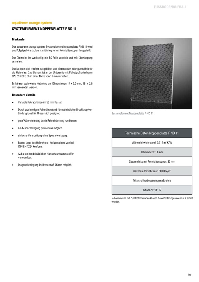 Das aquatherm orange system -Systemelement Noppenplatte F ND 11 wird