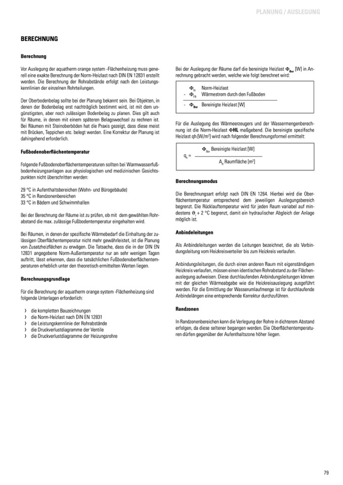Vor Auslegung der aquatherm orange system -Flächenheizung muss gene-