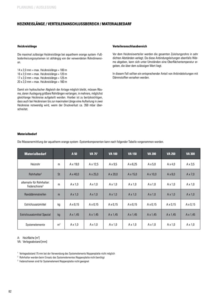 Die maximal zulässige Heizkreislänge bei aquatherm orange system -Fuß-