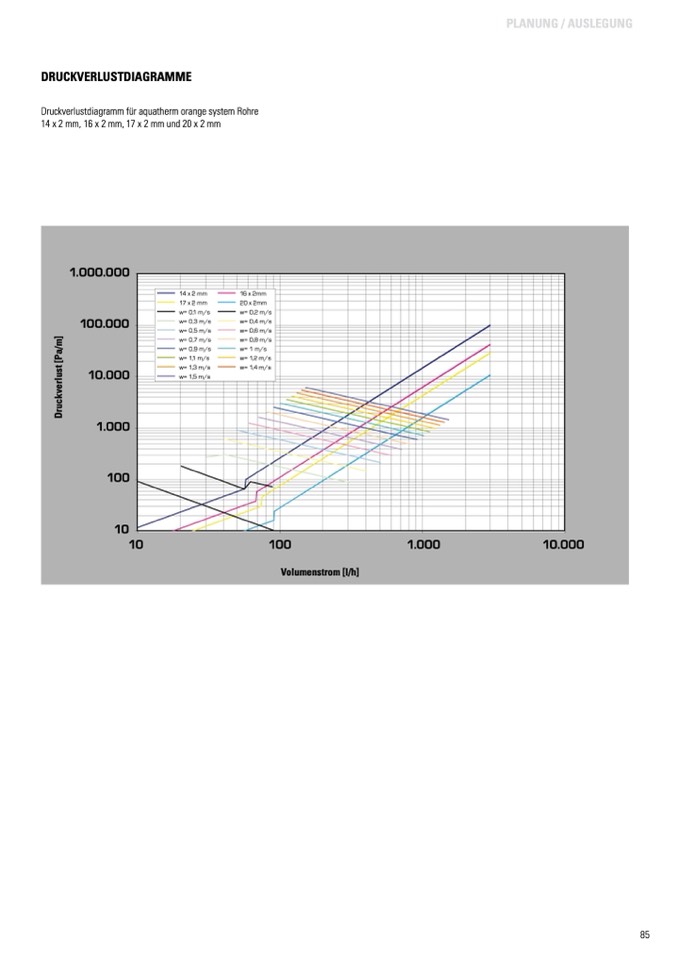 Druckverlustdiagramm für aquatherm orange system Rohre