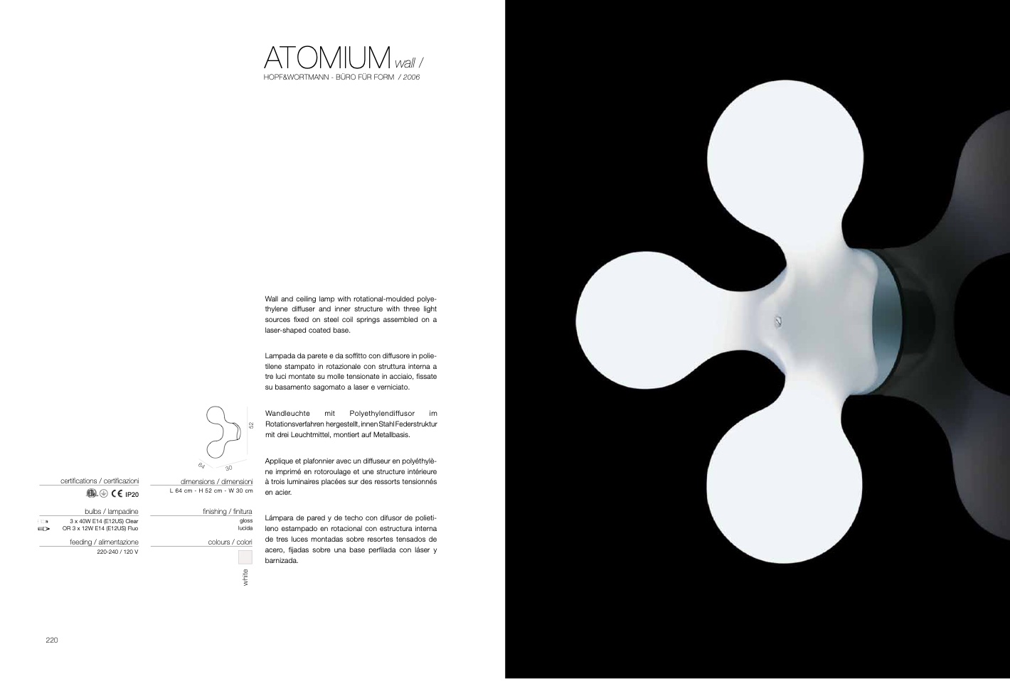 Lámpara de pared y de techo con difusor de polieti-