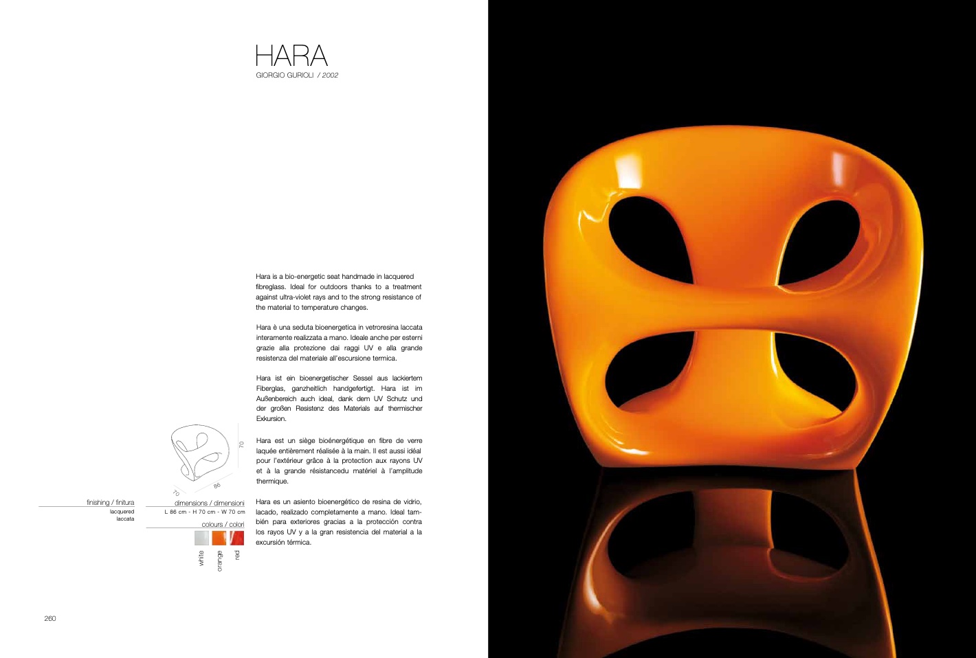 Hara ist ein bioenergetischer Sessel aus lackiertem