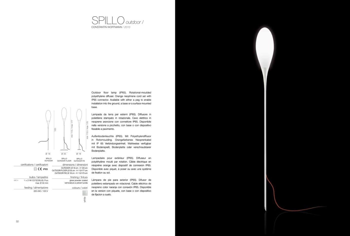 Outdoor floor lamp (IP65). Rotational-moulded