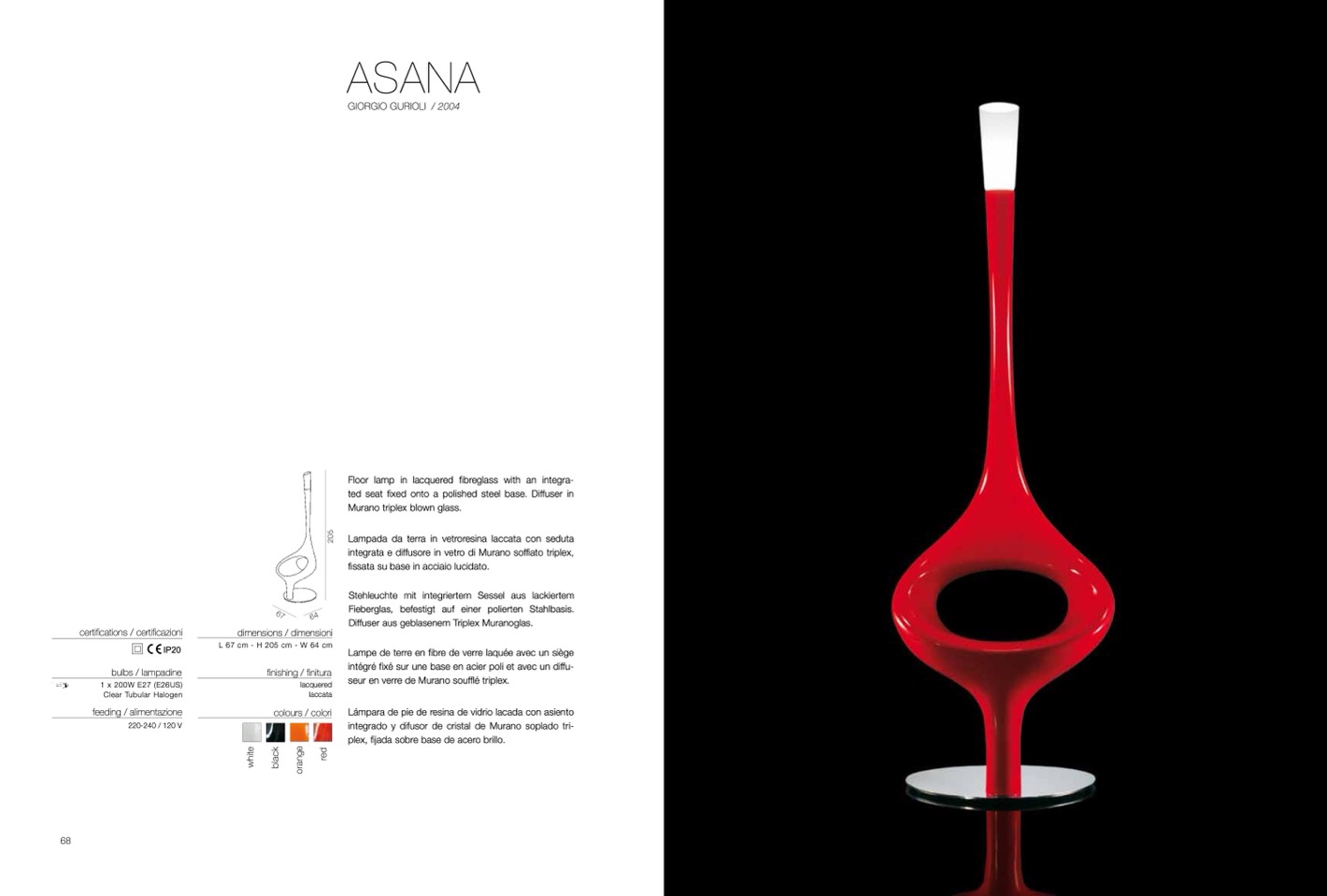 Lampada da terra in vetroresina laccata con seduta