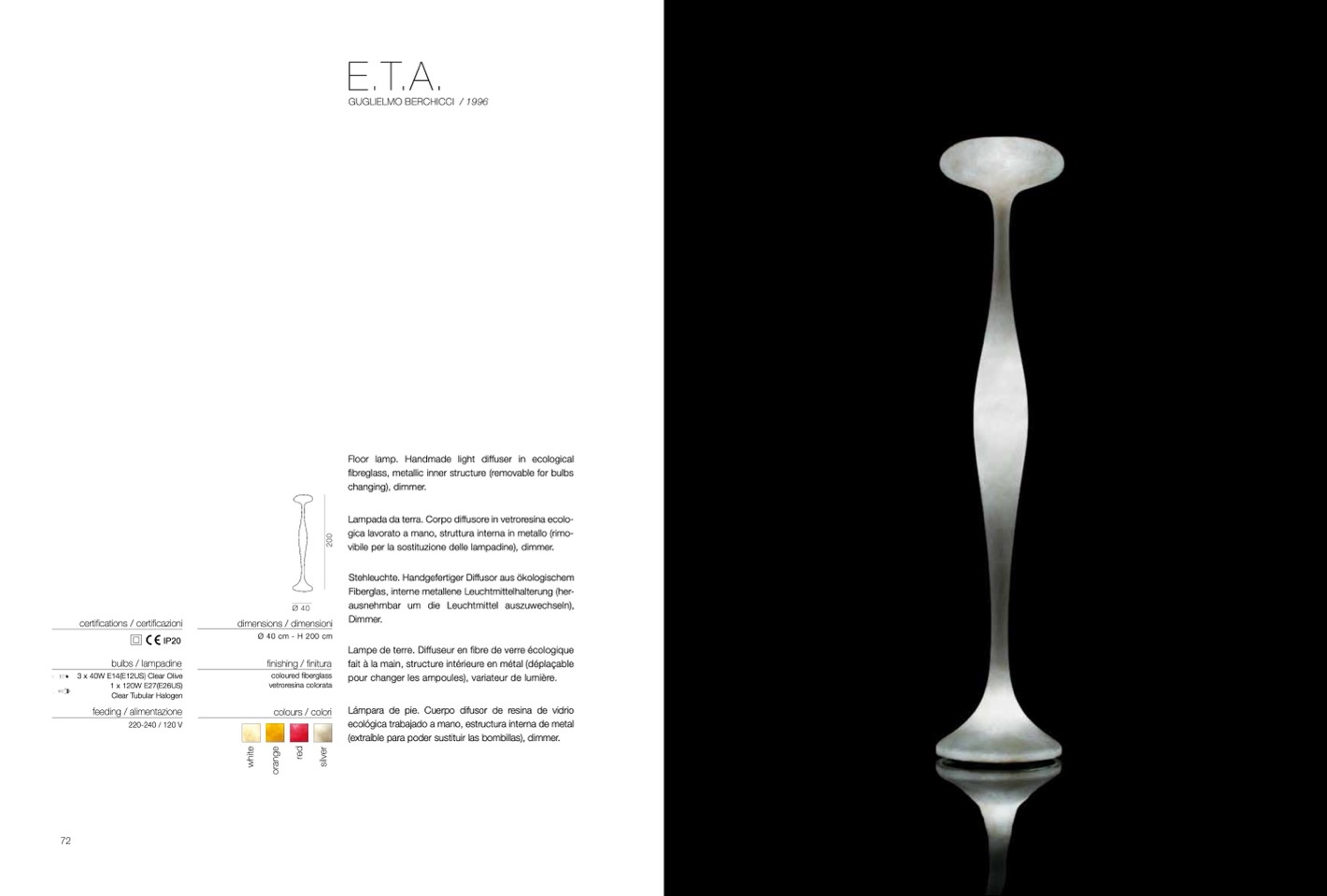 Lampada da terra. Corpo diffusore in vetroresina ecolo-
