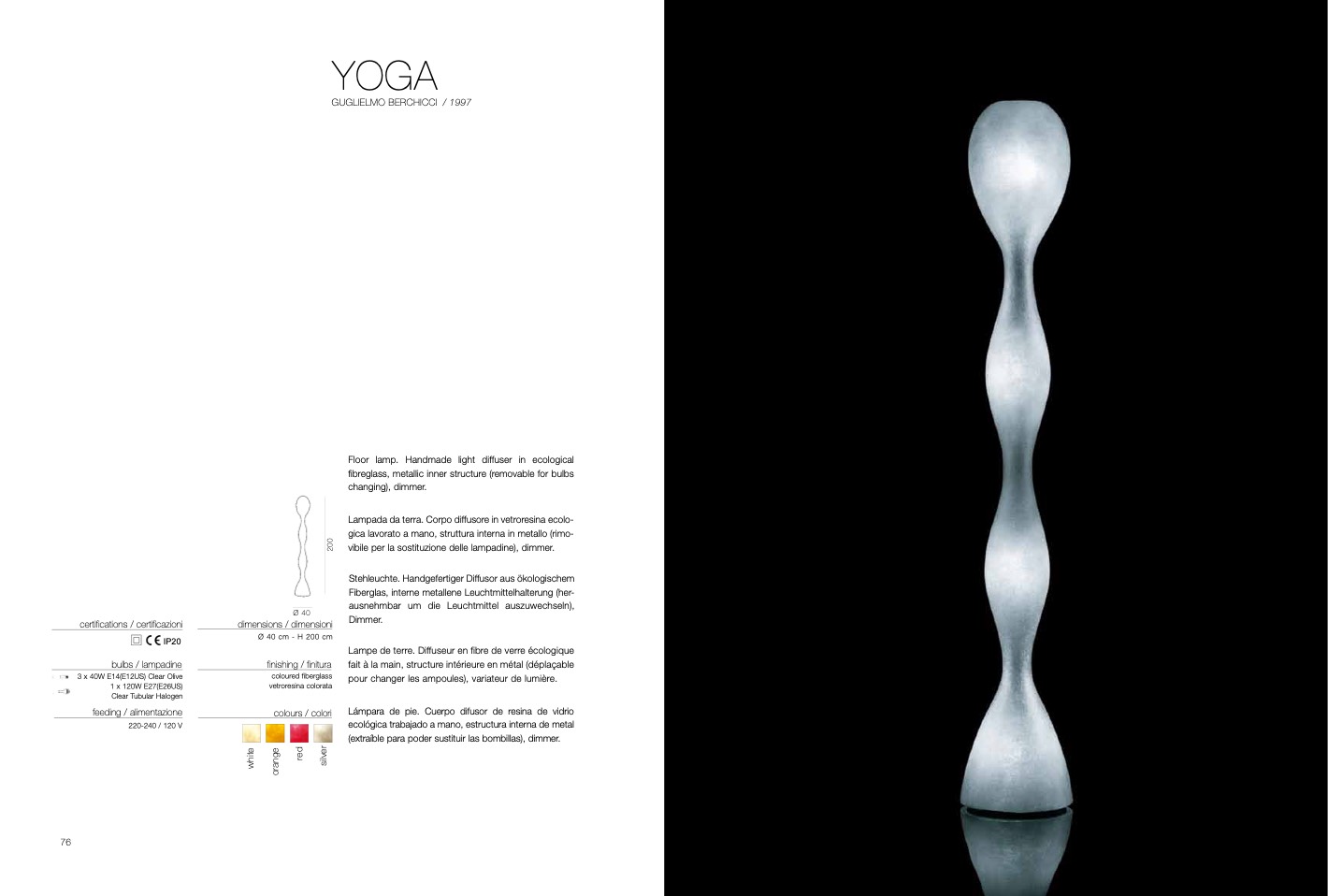 Lampada da terra. Corpo diffusore in vetroresina ecolo-