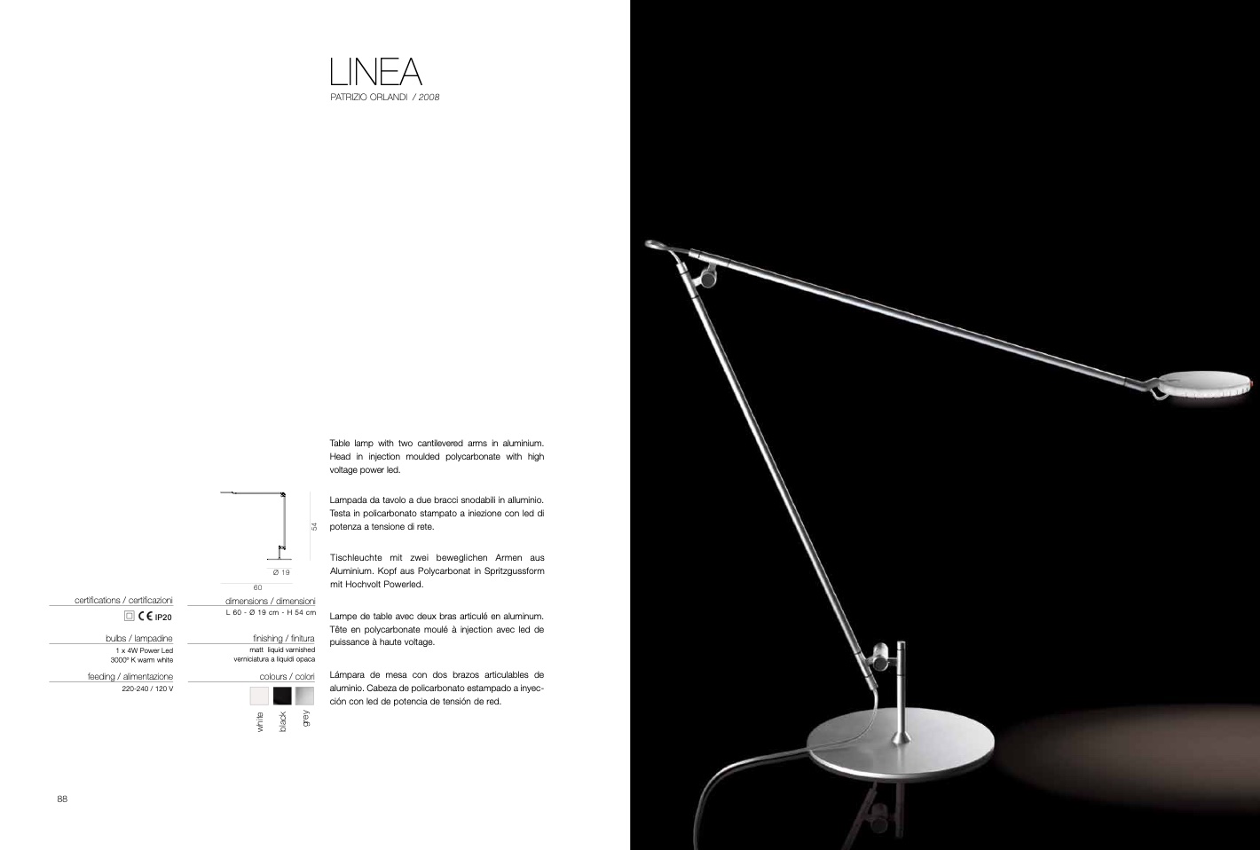 Lampada da tavolo a due bracci snodabili in alluminio.