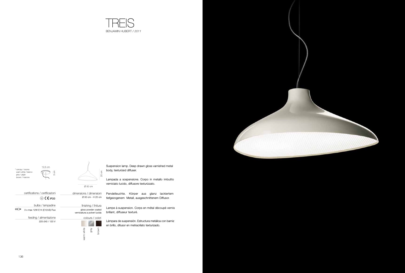 verniciato lucido, diffusore texturizzato.