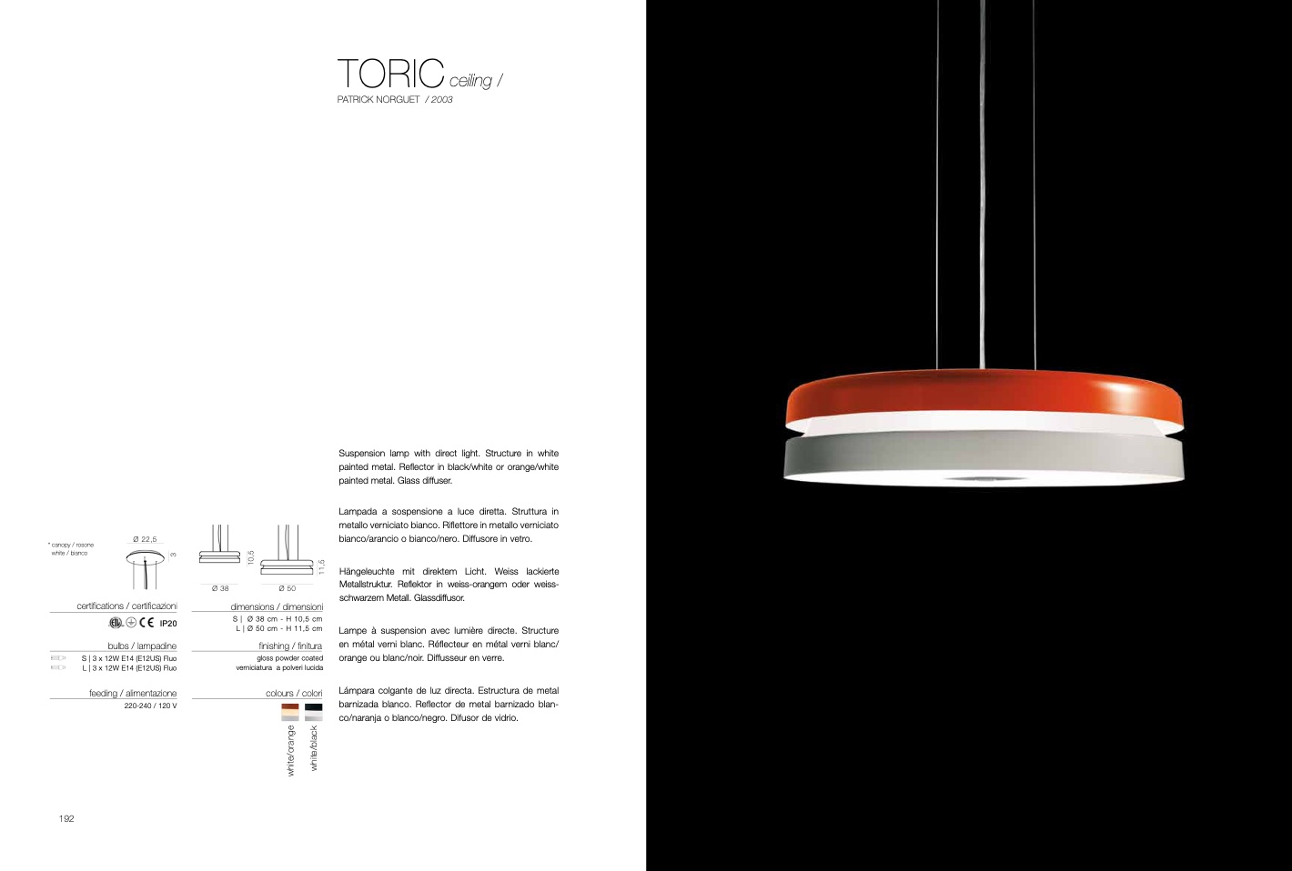 bianco/arancio o bianco/nero. Diffusore in vetro.