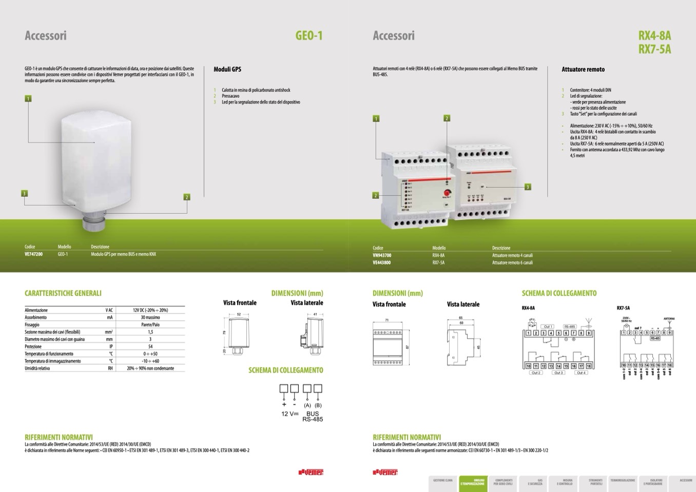 Attuatori remoti con 4 relè (RX4-8A) o 6 relè (RX7-5A) che possono essere collegati al Memo BUS tramite