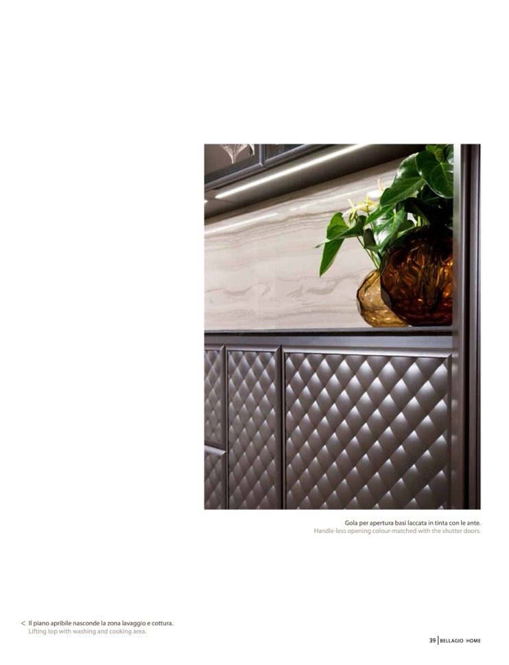 Il piano apribile nasconde la zona lavaggio e cottura.