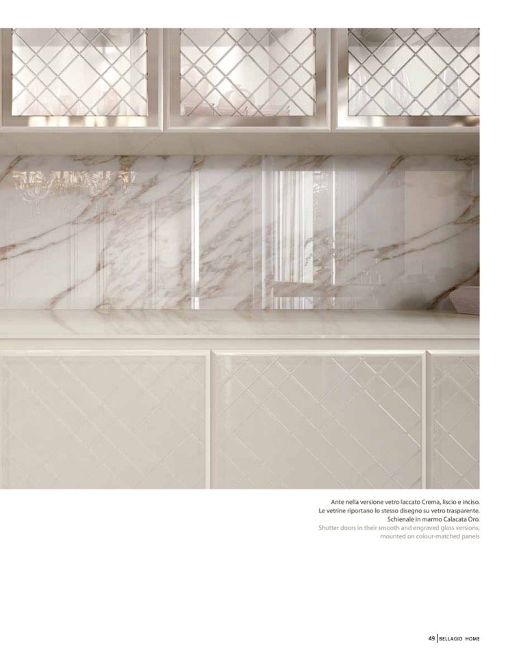 Ante nella versione vetro laccato Crema, liscio e inciso.