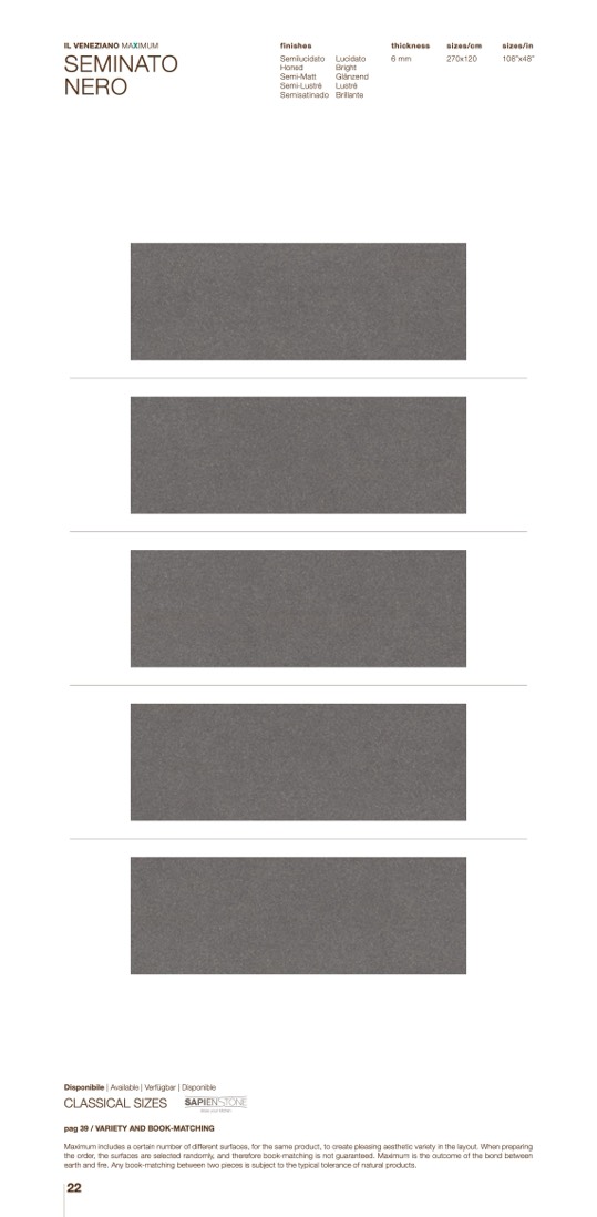Maximum includes a certain number of different surfaces, for the same product, to create pleasing aesthetic variety in the layout. When preparing